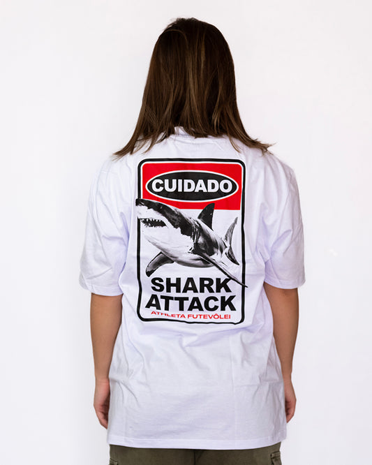 Camisa Athleta 90 Casual Futevôlei Cuidado Shark Attack Preta ATL009