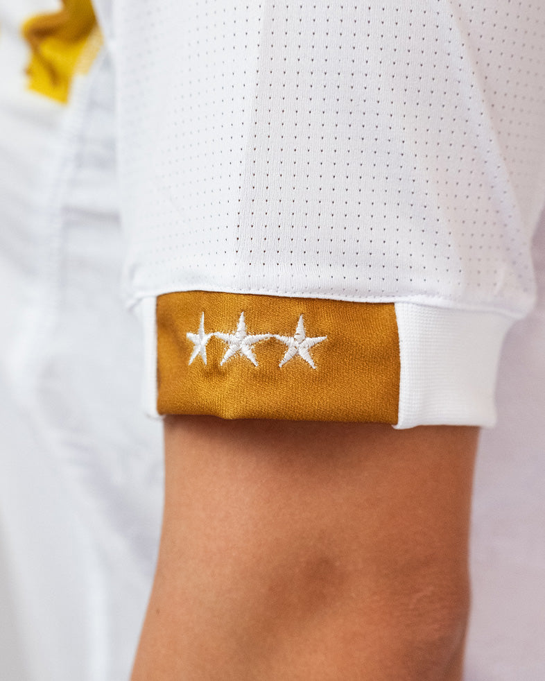 O estado da arte em vestuário esportivo. Esta camisa combina os tecidos AeroDry e Jacquard para oferecer uma gestão térmica superior e uma textura sofisticada. Com modelagem anatômica e costuras especiais que reduzem o atrito, é a peça definitiva para quem exige performance de elite e exclusividade.