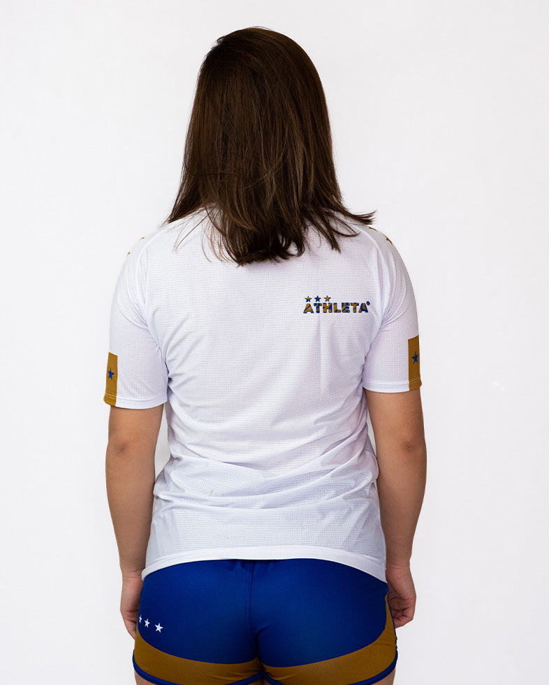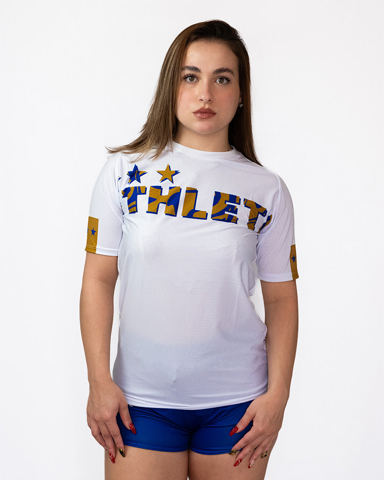 Athleta SS25 Comfort 女款短袖保暖上衣 - 藍白金